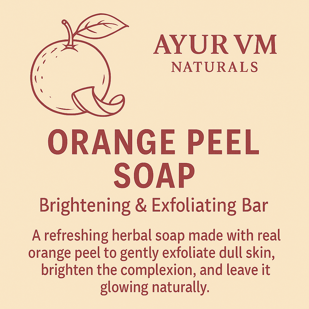 Description: Awaken your senses with the refreshing citrus energy of Ayur VM Naturals Orange Peel Soap.Infused with real orange peel powder and pure essential oils, this soap gently exfoliates dull skin, removes impurities and leaves your skin feeling fresh, soft and radiant.